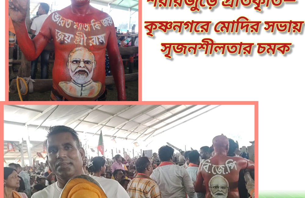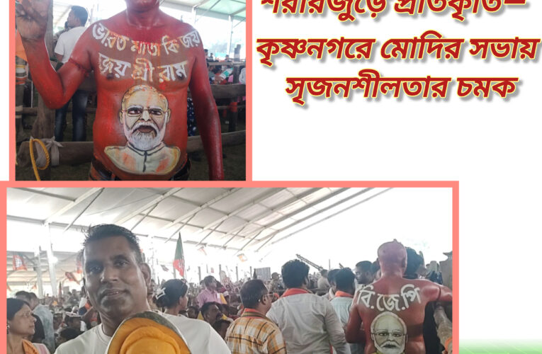 দু’ঘণ্টায় কুমড়ো খোদাই, শরীরকে ক্যানভাস বানিয়ে নজর কাড়লেন দুই যুবক—মোদীর সভা ঘিরে অভিনব উদ্যোগে চর্চানিজস্ব সংবাদদাতা, নদিয়া:কৃষ্ণনগরে প্রধানমন্ত্রী Narendra Modi-র জনসভা ঘিরে রাজনৈতিক উত্তেজনার পাশাপাশি দেখা গেল এক অন্যরকম চিত্র। … Read More