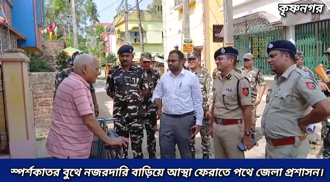 বুধবার সকালে জেলা শাসক শ্রাকন্ত পাল্লী এবং কৃষ্ণনগর পুলিশ জেলার পুলিশ সুপার ওয়াইং রঘুবংশীয় একযোগে জেলার একাধিক স্পর্শকাতর বুথ ও অশান্তিপ্রবণ এলাকা পরিদর্শন করেন। বিশেষ করে কৃষ্ণনগরের নাজিরা পাড়া এলাকার একটি গুরুত্বপূর্ণ বুথে গিয়ে খতিয়ে দেখা হয় নিরাপত্তা ব্যবস্থা, আশপাশের পরিবেশ এবং সম্ভাব্য ঝুঁকি।