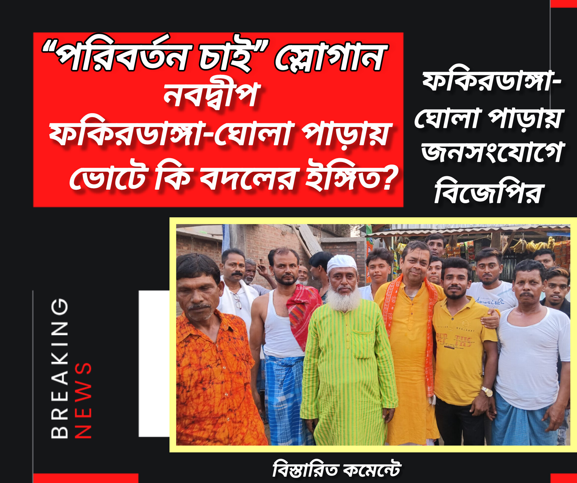 ফকিরডাঙ্গা-ঘোলা পাড়ায় বিজেপির শক্তি প্রদর্শন! শ্রুতি শেখর গোস্বামীর রোড শো, জনসংযোগ! , ‘পরিবর্তন চাই’ স্লোগানে মুখর এলাকা!